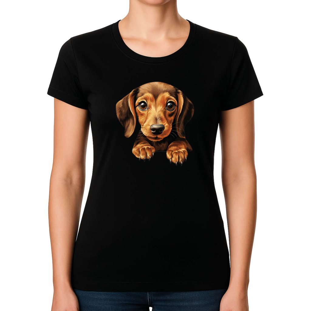 Dámské tričko s potiskem - Pes - Jezevčík hlava - černé
