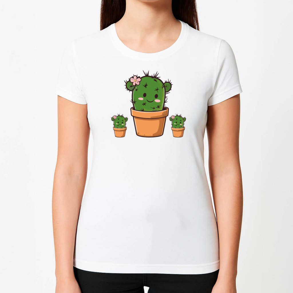 Dámské tričko s potiskem - Kaktus - bílé