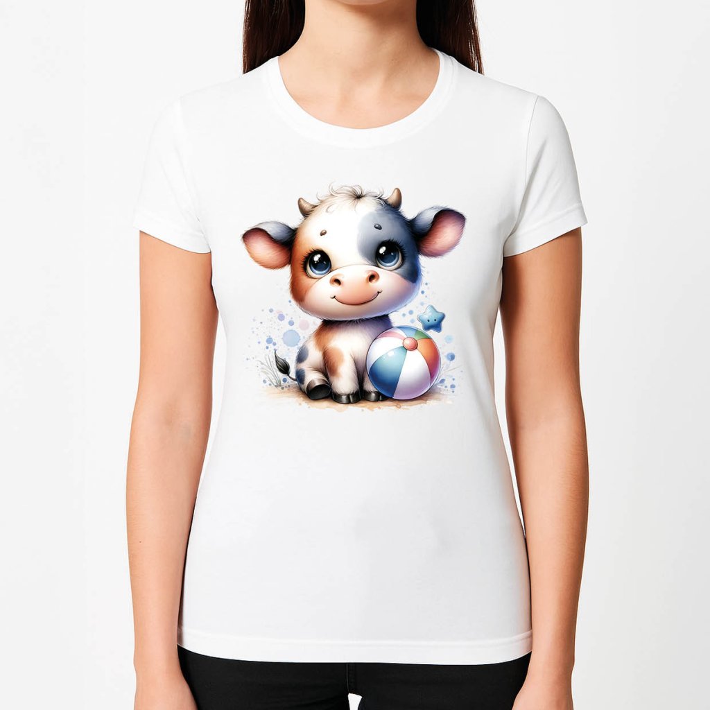 Dámské tričko s potiskem - Kravička s balónem - bílé