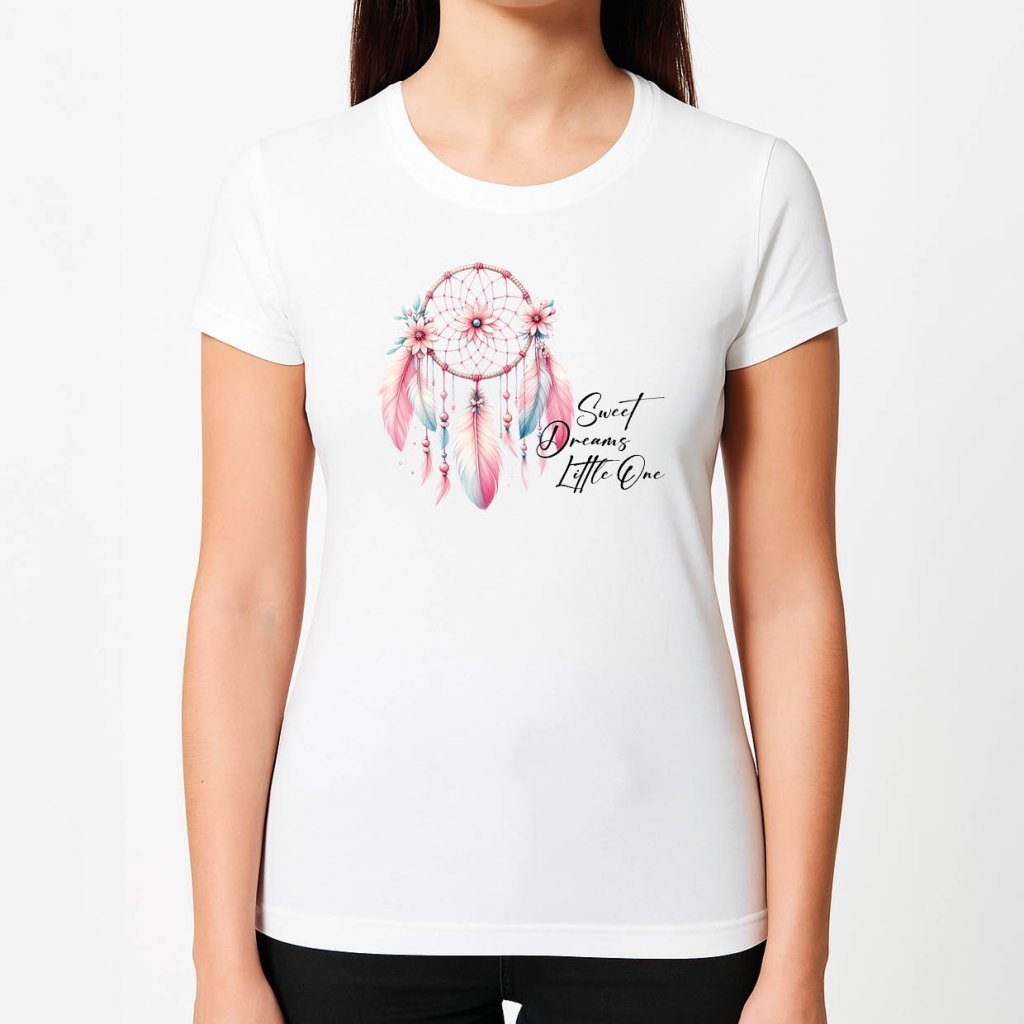 Dámské tričko s potiskem - Lapač snů s nápisem - bílé