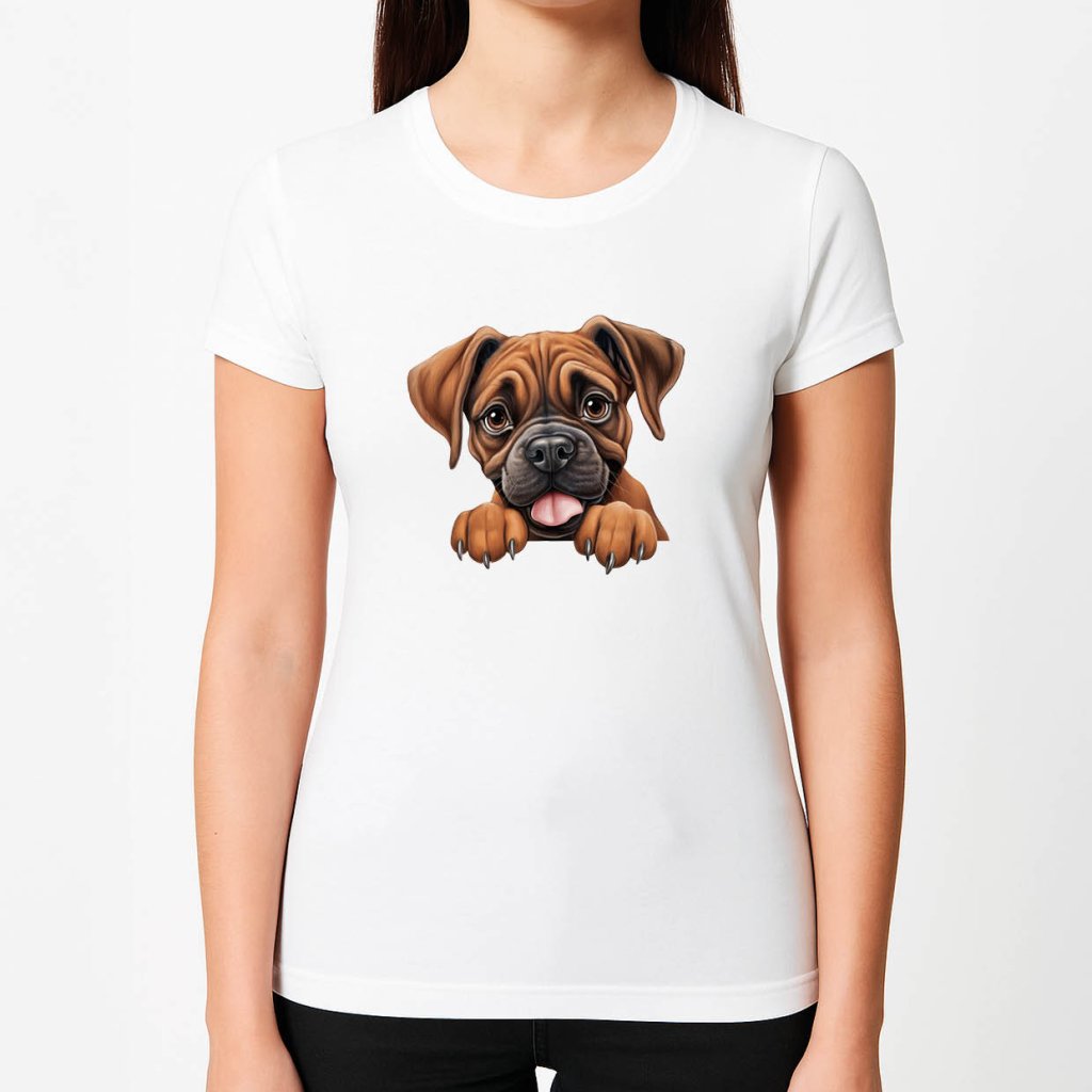 Dámské tričko s potiskem - Pes - Boxer - bílé