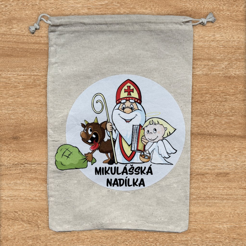 Originální látkový pytlík s potiskem,na mikulášskou nadílku ✨ Využiješ ho na drobnosti, dobroty nebo dárky pro děti. Každý pytlík je potištěný tiskem s veselým motivem.