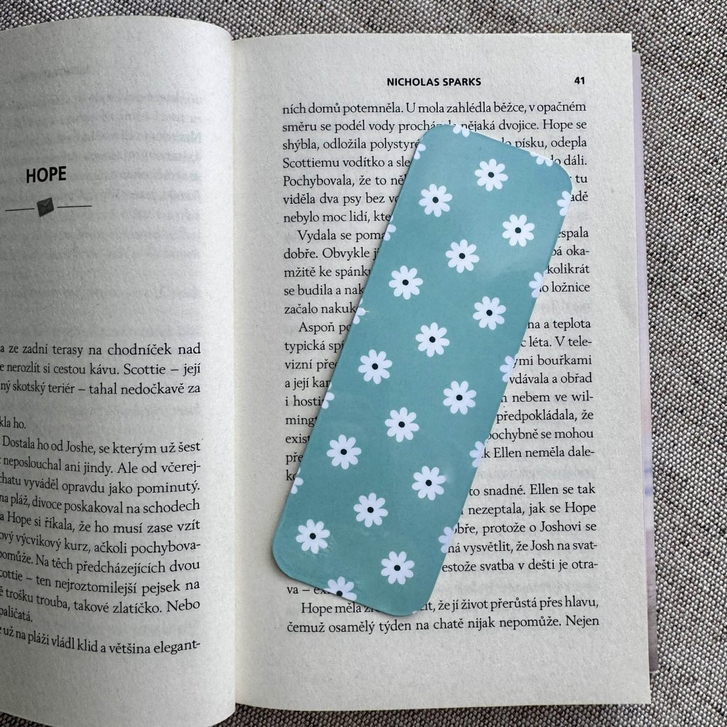 • Záložka je jednostranná – motiv je pouze na jedné straně, zatímco druhá strana je bílá