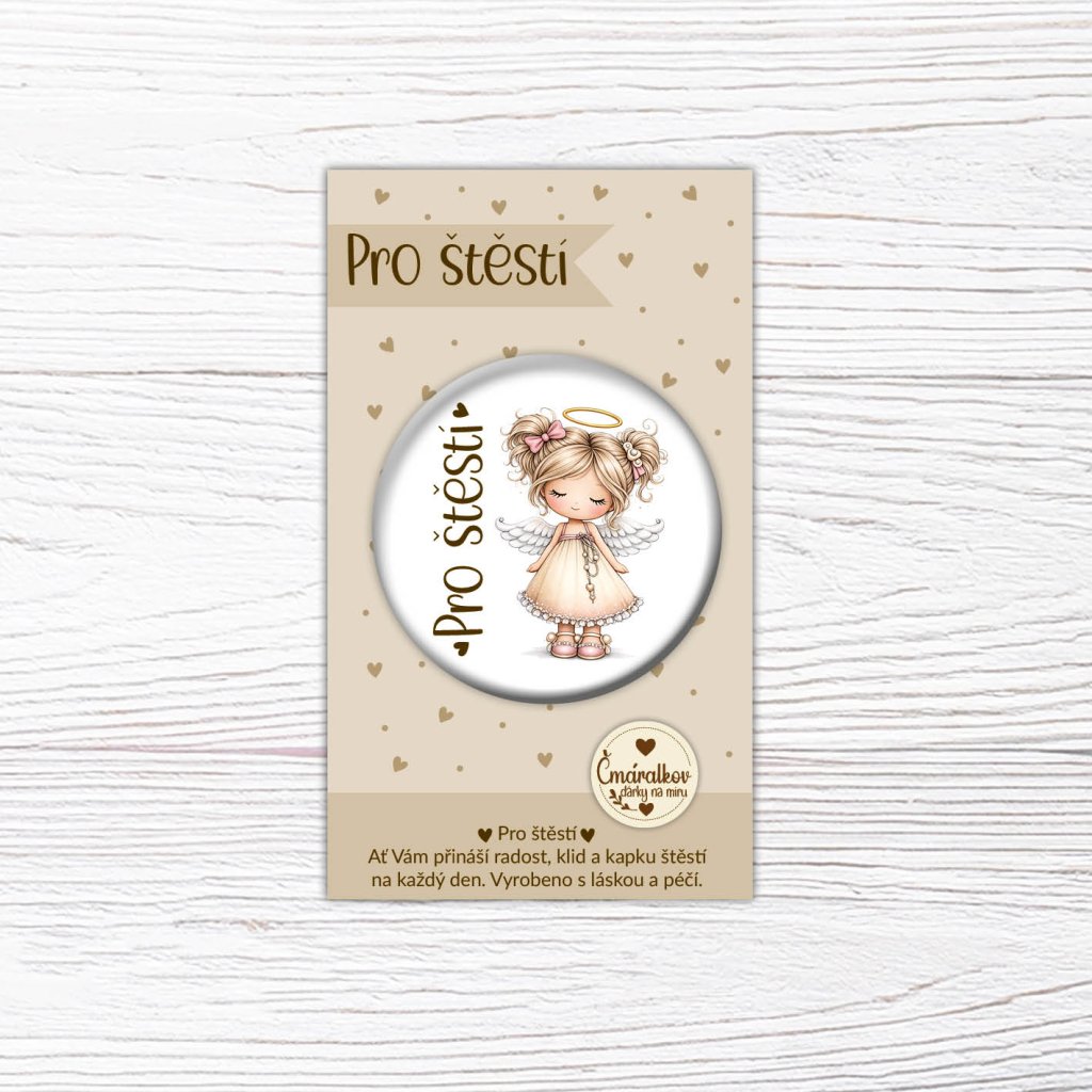 Placka Ø 58 mm - Andělka pro štěstí 2