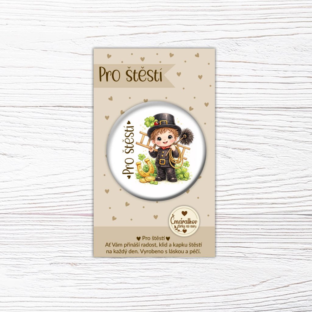 Placka Ø 58 mm - Kominíček pro štěstí