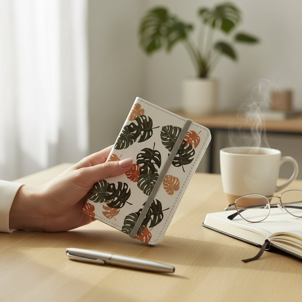 Pouzdro se uzavírá pomocí pružné gumičky, která zajistí, že doklady zůstanou bezpečně uložené. Vnitřní uspořádání nabízí prostor pro doklady, karty i další drobnosti, které chcete mít po ruce.