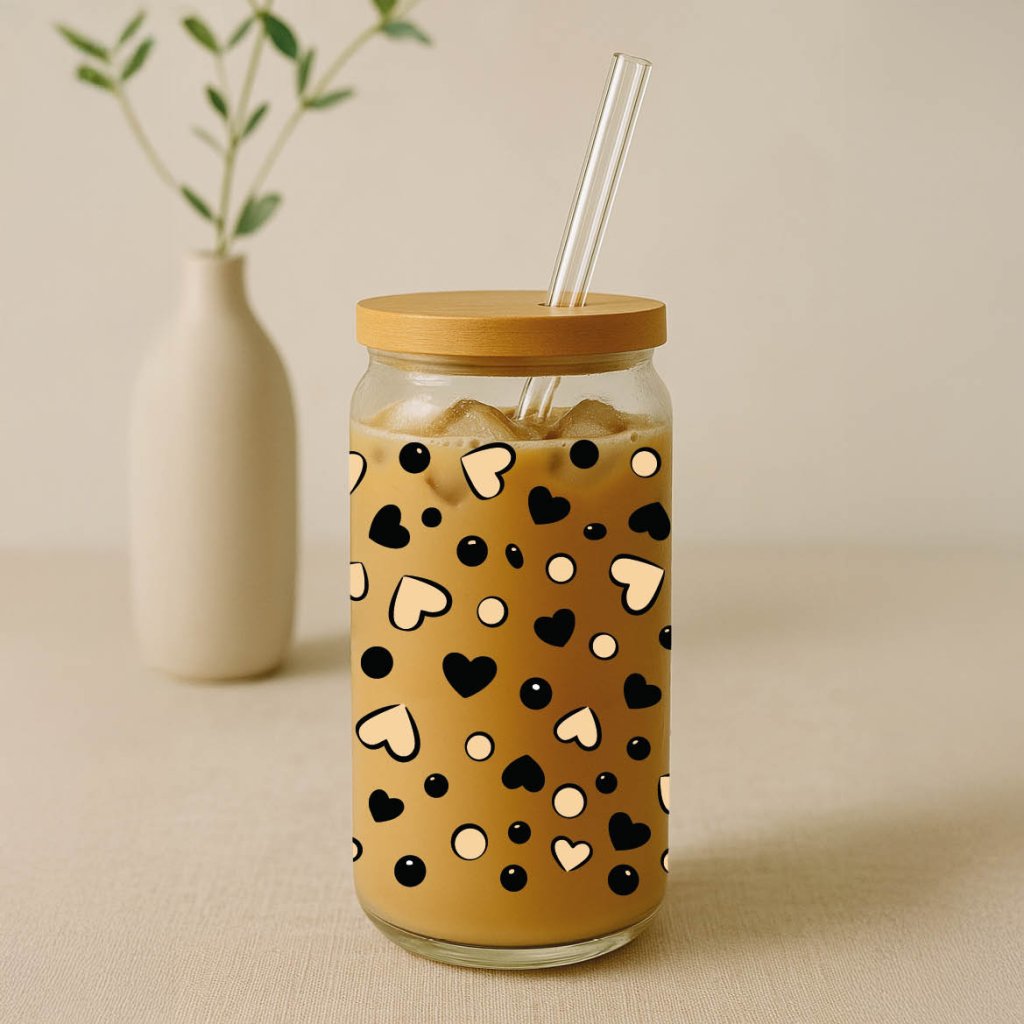 Sklenička Srdíčka béžová - brčko a víčko součástí