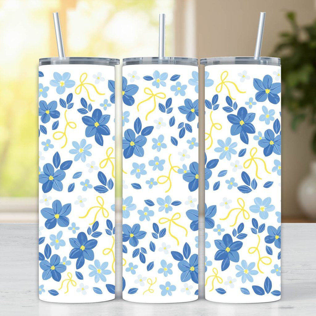 Termo kelímek - Modré květiny, mašle 590 ml