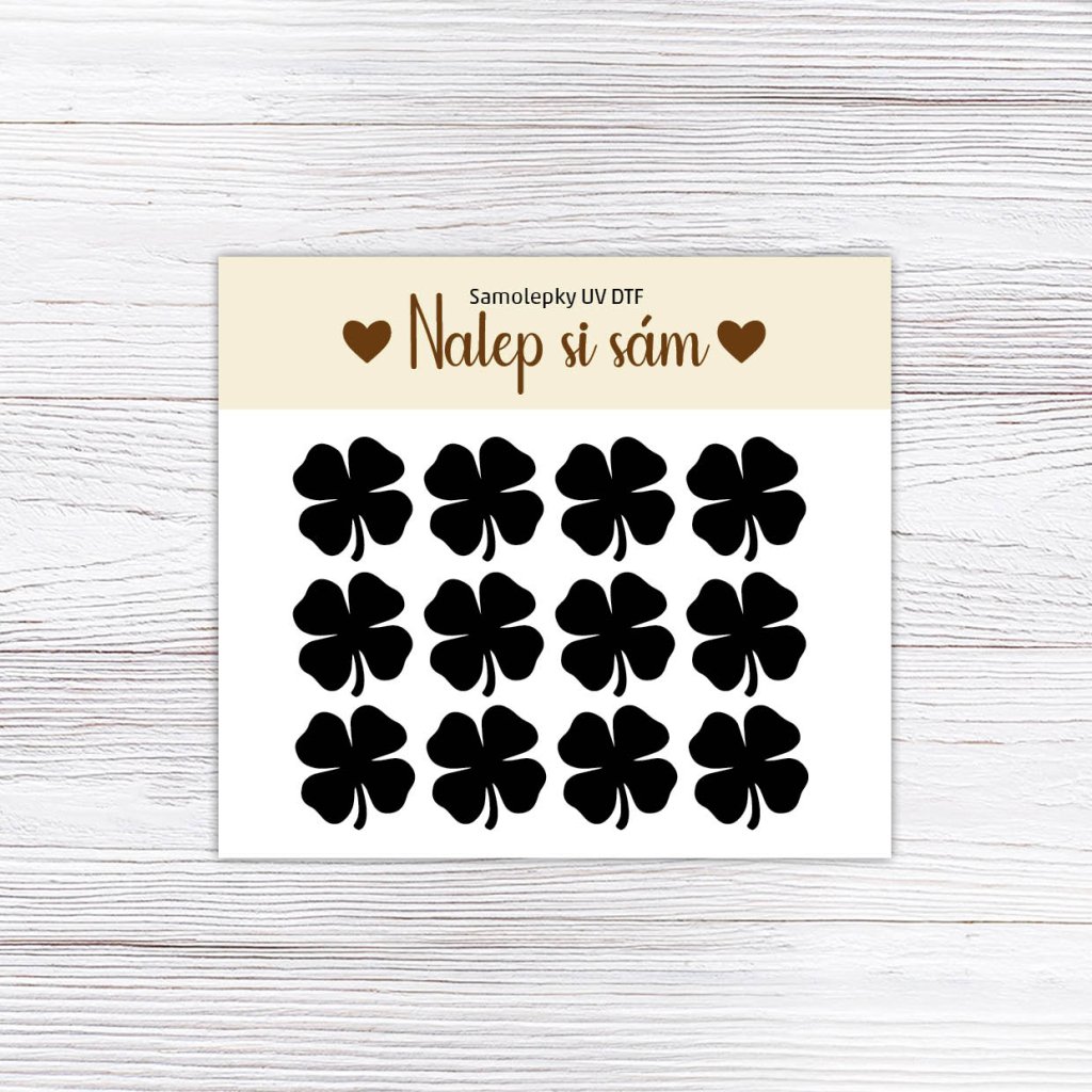 UV Samolepky - NALEP SI SÁM - Čtyřlístek černý 12 ks