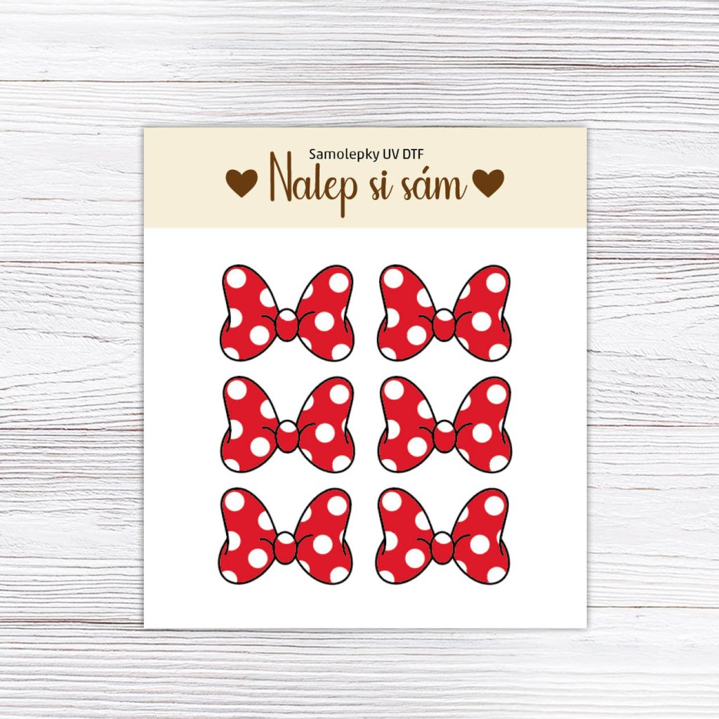 UV Samolepky - NALEP SI SÁM - mašle puntikatá - velká 6 ks