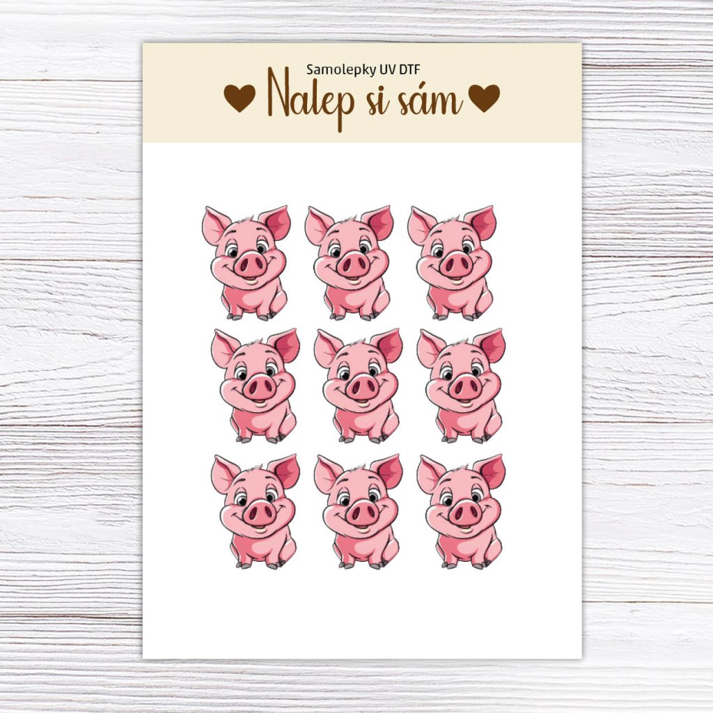 UV Samolepky - NALEP SI SÁM - Prasátko 9 ks